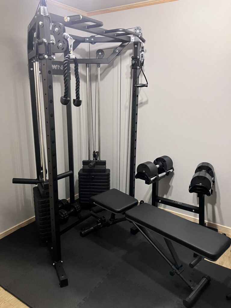 フリーウェイトだけでは鍛えにくい部位もカバーできるため、4畳ジムには最適解だと感じています。